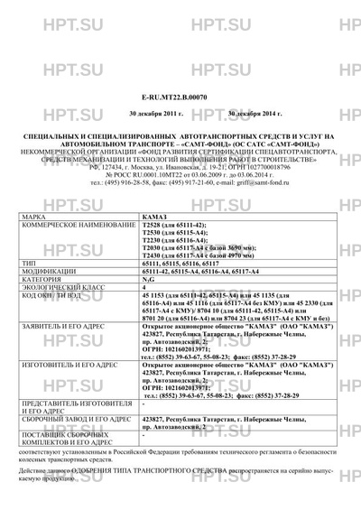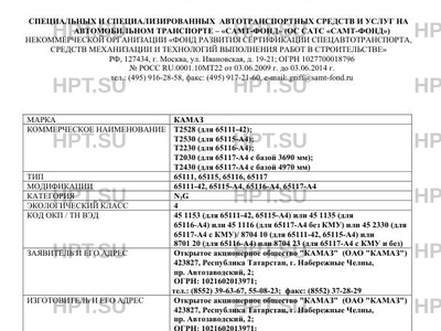 | Тип ТС | Т2528 (для 65111-42);,Т2530 (для 65115-А4);,Т2230 (для 65116-А4);,Т2030 (для 65117-А4 с базой 3690 мм);,Т2430 (для 65117-А4 с базой 4970 мм) |