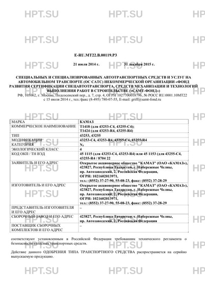 | Тип ТС | Т1418 (для 43253-С4, 43255-С4);,Т1424 (для 43253-R4, 43255-R4) |