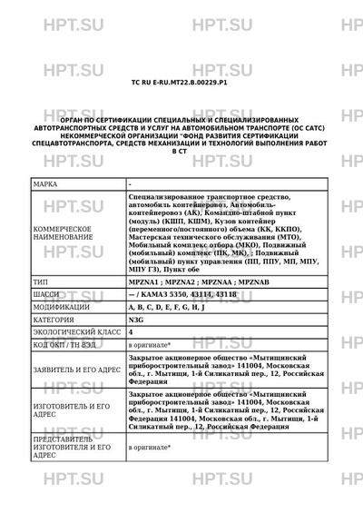 | Номер документа | ТС RU E-RU.МТ22.В.00229.Р1 |