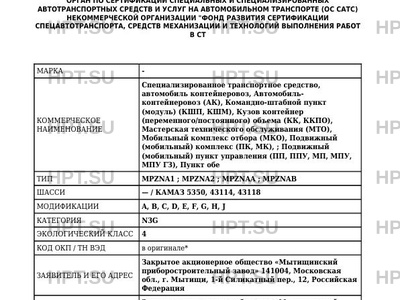 | Коммерческое наименование | Специализированное транспортное средство, автомобиль контейнеровоз, Автомобиль-контейнеровоз (АК), Командно-штабной пункт (модуль) (КШП, КШМ), Кузов контейнер (переменного/постоянного) объема (КК, ККПО), Мастерская технического обслуживания (МТО), Мобильный комплекс отбора (МКО), Подвижный (мобильный) комплекс (ПК, МК), ; Подвижный (мобильный) пункт управления (ПП, ППУ, МП, МПУ, МПУ ГЗ), Пункт обе |