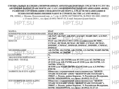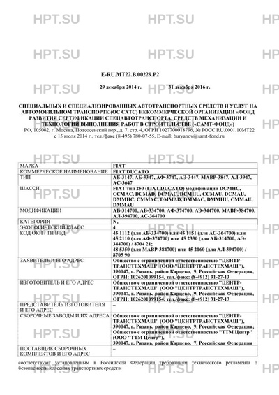 | Базовое ТС / Шасси | FIAT тип 250 (FIAT DUCATO) модификации DCMHC, CCMAC, DCMAD, DCMAC, DCMHU, CCMAU, DCMAU, DMMHC, CMMAC, DMMAD, DMMAC, DMMHU, CMMAU, DMMAU |