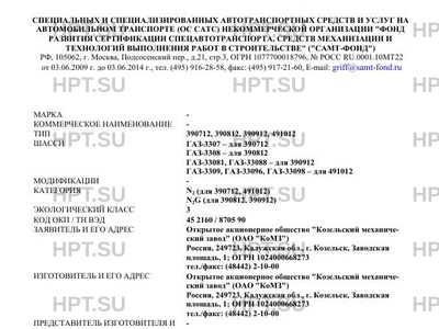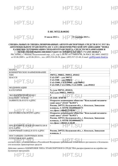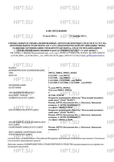 | Базовое ТС / Шасси | ГАЗ-3307 – для 390712 ГАЗ-3308 – для 390812 ГАЗ-33081, ГАЗ-33088 – для 390912 ГАЗ-3309, ГАЗ-33096, ГАЗ-33098 – для 491012 |