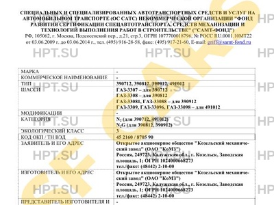 | Категория ТС | N2 (для 390712, 491012),N2G (для 390812, 390912) |