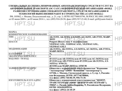| Дополнительная информация | Перевозка пассажиров в переднем отсеке фургонов, оснащенных пассажирскими сиденьями, запрещена (для МАВР-38353А).; ; Назначение транспортного средства:; для перевозки грузов различного назначения, кроме опасных грузов (для АБ-33353А);; для погрузки/разгрузки и транспортировки грузов, кроме опасных грузов (для АБ-31353А);; для перевозки продовольственных и промышленных грузов, скоропортящихся продуктов (для АФ-37353А);; машина аварийно-технической службы (для МАВР-38353А);; для транспортировки сыпучих и навалочных грузов (для АС-36353А);; автоэвакуатор (для АЭ-34353А).; |