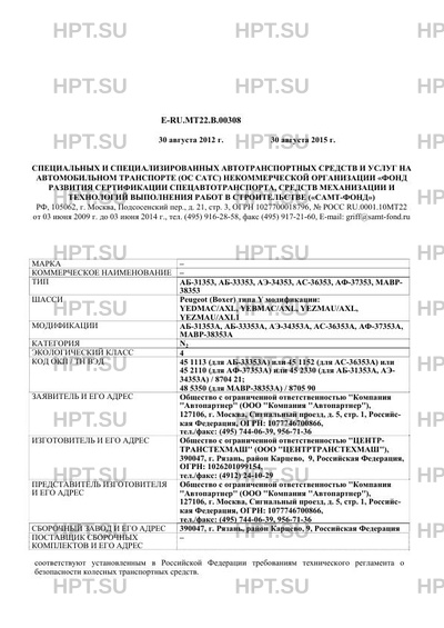 | Тип ТС | АБ-31353, АБ-33353, АЭ-34353, АС-36353, АФ-37353, МАВР-38353 |