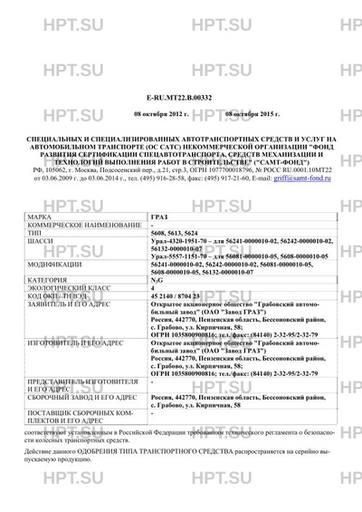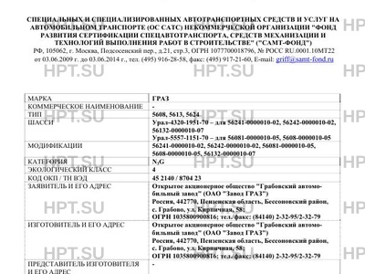| Заявитель | Открытое акционерное общество "Грабовский автомобильный завод" (ОАО "Завод ГРАЗ") Россия, 442770, Пензенская область, Бессоновский район, с. Грабово, ул. Кирпичная, 58; ОГРН 1035800900816; тел./факс: (84140) 2-32-95/2-32-79 |