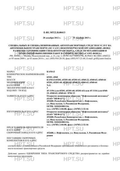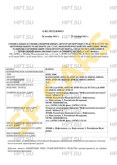 | Базовое ТС / Шасси | КАМАЗ-65201, 65201-60, 65201-63, 6560-22, 6560-63, 6560-64 |