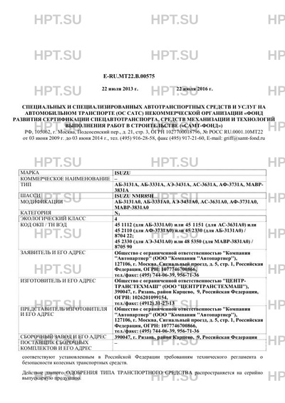Тип ТС АБ-3131А, АБ-3331А, АЭ-3431А, АС-3631А, АФ-3731А, МАВР- 3831А