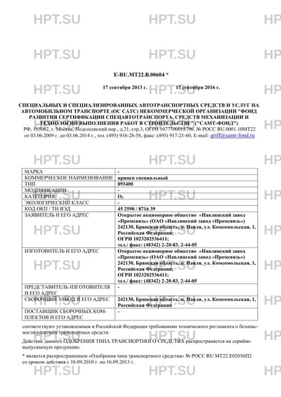 | Номер документа | Е-RU.МТ22.В.00604 |