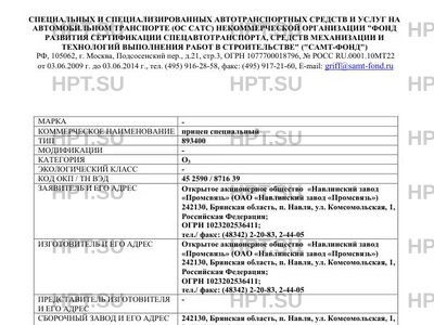 | Коммерческое наименование | прицеп специальный; 893400 |