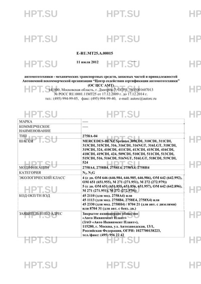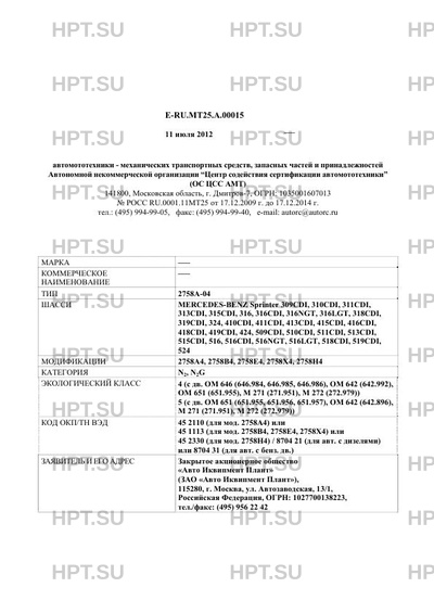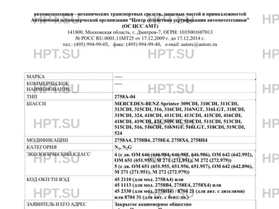 | Базовое ТС / Шасси | MERCEDES-BENZ Sprinter 309CDI, 310CDI, 311CDI, 313CDI, 315CDI, 316, 316CDI, 316NGT, 316LGT, 318CDI, 319CDI, 324, 410CDI, 411CDI, 413CDI, 415CDI, 416CDI, 418CDI, 419CDI, 424, 509CDI, 510CDI, 511CDI, 513CDI, 515CDI, 516, 516CDI, 516NGT, 516LGT, 518CDI, 519CDI, 524 |