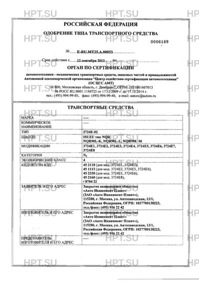 | Код VIN | с X0V3724E???000001 по X0V3724E???000100 |