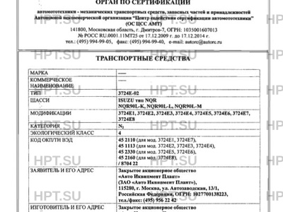 | Базовое ТС / Шасси | ISUZU тип NQR, NQR90L-K, NQR90L-L, NQR90L-M |