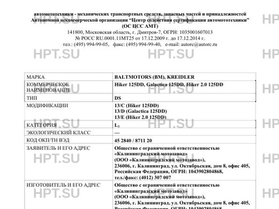 | Марка ТС | BALTMOTORS (BM), KREIDLER |