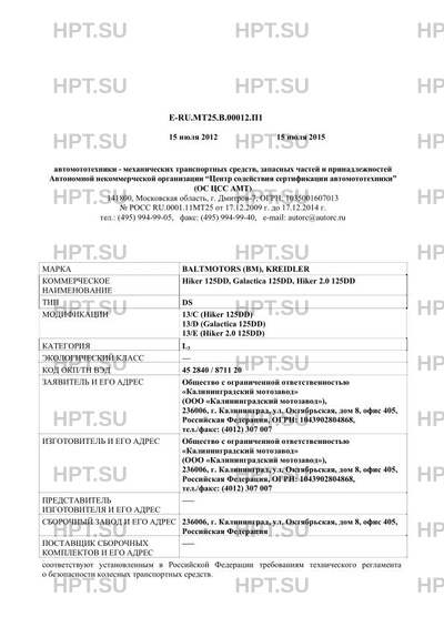 | Номер документа | ТС RU E-RU.МТ25.В.00012.П1 |