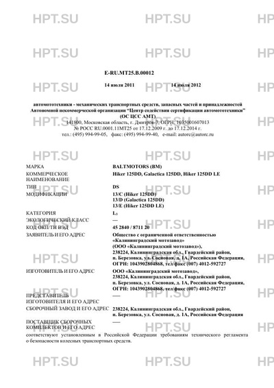 | Номер документа | ТС RU E-RU.МТ25.В.00012. |