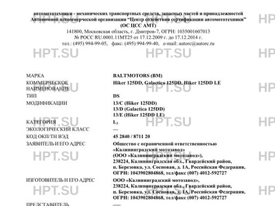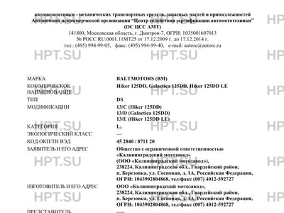 | Коммерческое наименование | Hiker 125DD, Galactica 125DD, Hiker 125DD LE. Тип ТС: DS |
