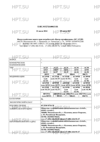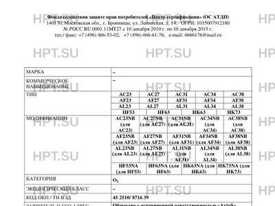 | Коммерческое наименование | '-; АС23,АС27,АС31,АС34,АС38,AF23,AF27,AF31,AF34,AF38,AL23,AL27,AL31,AL34,AL38,HF53,HF63,HK63,HK73 |