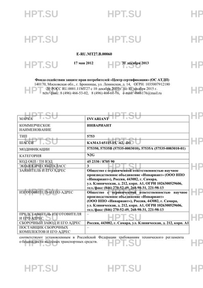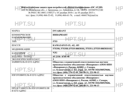 Коммерческое наименование ИНВАРИАНТ. Тип ТС: 5753