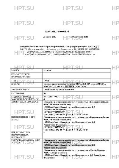 | Базовое ТС / Шасси | базовые транспортные средства RENAULT MA мод. MAFECC, MAFEAC, MAFEAA, MAF4CА (M… |