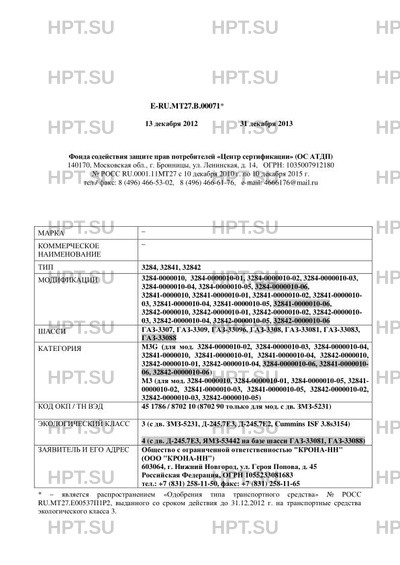 | Коммерческое наименование | . Тип ТС: 3284, 32841, 32842 |