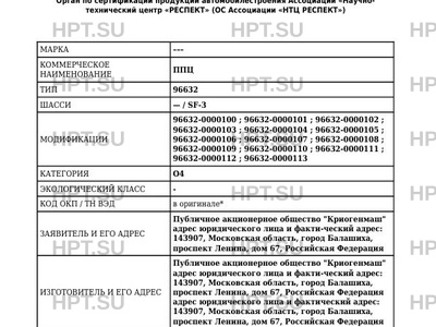 | Модификации | 96632-0000100; 96632-0000101; 96632-0000102; 96632-0000103; 96632-0000104; 9663… |