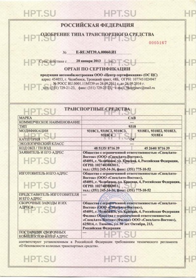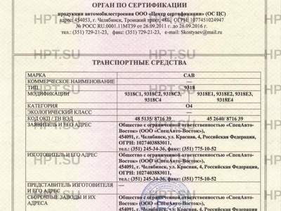| Количество единиц | партия 87 шт. с номерами VIN с Х899318???0CE3013 по Х899318???0CE3050, изготовленных ООО «СпецАвто-Восток» (ул. Красная, 4, г. Челябинск, 454091) и с Х899318???0ER2002 по Х899318???0ER2050, изготовленных Филиалом ООО «СпецАвто-Восток» (ул. 50 лет Октября, 213, г. Тюмень, 625014) |