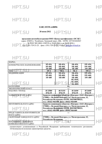 | Предприятие-изготовитель | Закрытое акционерное общество "Новтрак" (ЗАО "Новтрак"), 173008, г. Великий Новгород, ул. Магистральная, 15, Российская Федерация, ОГРН: 1025300788523, тел.: (8162) 944-000, факс: (8162) 944-009 |