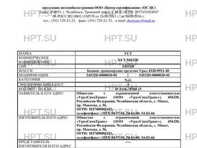 | Базовое ТС / Шасси | базовое транспортное средство Урал 4320-0911-40 |