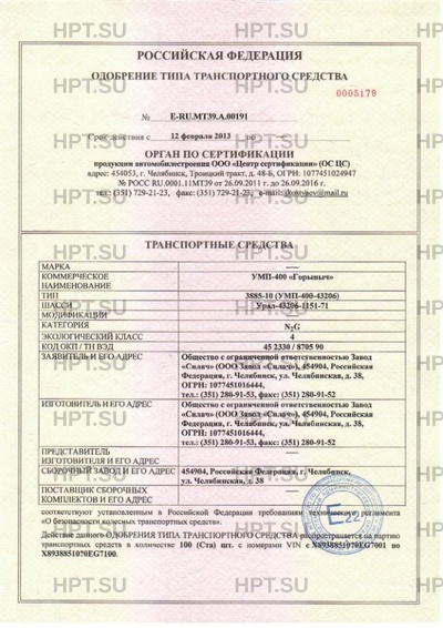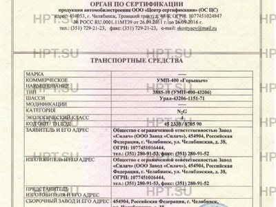 | Тип ТС | 3885-10 (УМП-400-43206) |