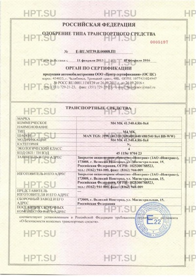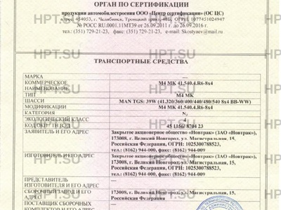 | Предприятие-изготовитель | Закрытое акционерное общество «Новтрак» (ЗАО «Новтрак»), 173008, г. Великий Новгород, ул. Магистральная, 15, Российская Федерация, ОГРН: 1025300788523, тел.: (8162) 944-000, факс: (8162) 944-009 |