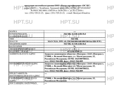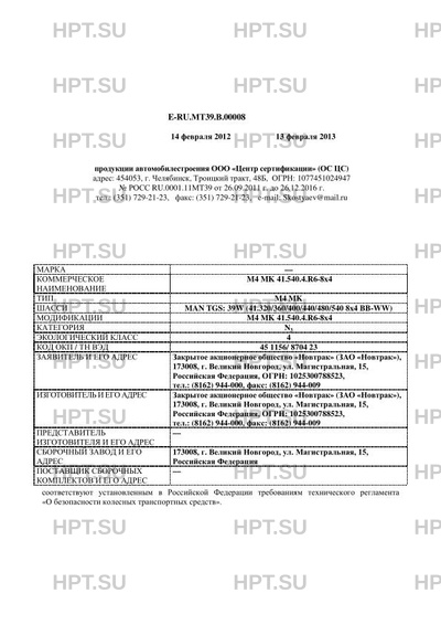 | Предприятие-изготовитель | Закрытое акционерное общество «Новтрак» (ЗАО «Новтрак»), 173008, г. Великий Новгород, ул. Магистральная, 15, Российская Федерация, ОГРН: 1025300788523, тел.: (8162) 944-000, факс: (8162) 944-009 |