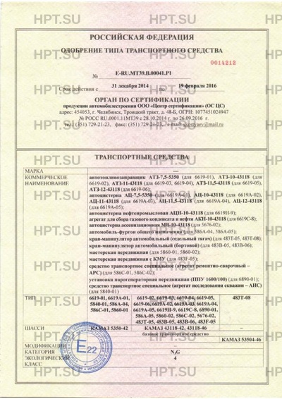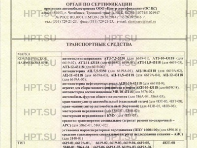 | Коммерческое наименование | автотопливозаправщик АТЗ-7,5-5350 (для 6619-01), АТЗ-10-43118 (для 6619-02), АТ… |