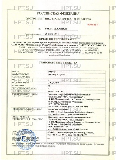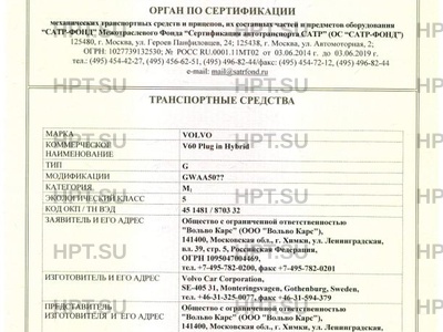 | Тип ТС | V60 Plug in Hybrid |