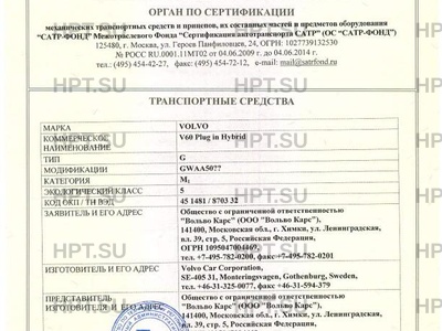 Заявитель Общество с ограниченной ответственностью "Вольво Карс" (ООО "Вольво Карс"), 141400, Московская обл., г. Химки, ул. Ленинградская, вл. 39, стр. 5, Российская Федерация, ОГРН 1095047004469, тел. +7-495-782-0200, факс +7-495-782-0201