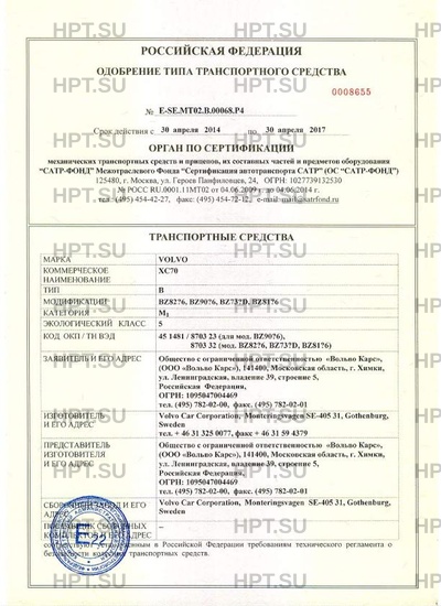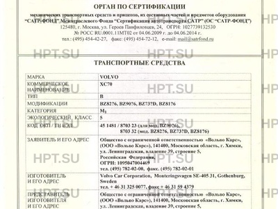 Заявитель Общество с ограниченной ответственностью "Вольво Карс", (ООО "Вольво Карс"), 141400, Московская область, г. Химки, ул. Ленинградская, владение 39, строение 5, Российская Федерация, ОГРН: 1095047004469 тел. (495) 782-02-00, факс. (495) 782-02-01