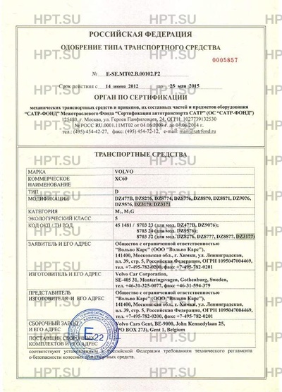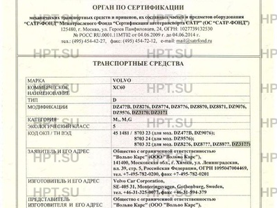 | Заявитель | Общество с ограниченной ответственностью "Вольво Карс" (ООО "Вольво Карс"), 141400, МОСКОВСКИЙ обли, г. ХИМКИ, уд. Ленинградская, вл. 39, стр. 5, Российская Федерация, ОГРН 1095047004469, тел. +7-495-782-0200, факс +7-495-782-0201 |