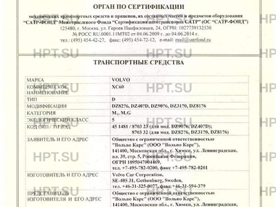 Заявитель Общество с ограниченной ответственностью "Вольво Карс" (ООО "Вольво Карс"), 141400, Московская обл., г. Химки, ул. Ленинградская, вл. 39, стр. 5, Российская Федерация, ОГРН 1095047004469, тел. +7-495-782-0200, факс +7-495-782-0201