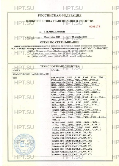 | Предприятие-изготовитель | SCANIA CV AB, SE-151 87 Sodertalje, Sweden |