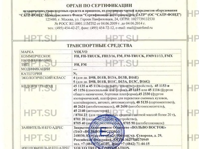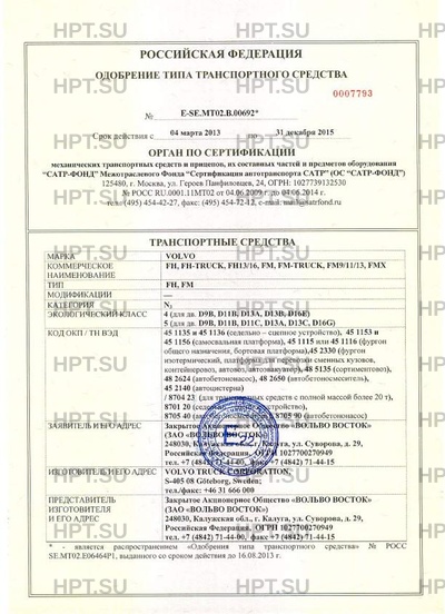 | Представитель изготовителя | Закрытое акционерное общество «Вольво Восток» |