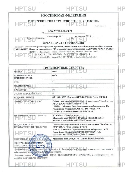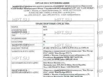 | Представитель изготовителя | Общество с ограниченной ответственностью «Киа Моторс РУС» (ООО «Киа Моторс РУС»), |