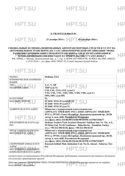 | Марка ТС | Orthaus, ULS |