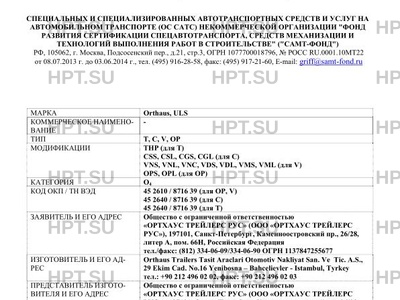| Представитель изготовителя | Общество с ограниченной ответственностью "ОРТХАУС ТРЕЙЛЕРС РУС" (ООО "ОРТХАУС ТРЕЙЛЕРС РУС"), 197101, Санкт-Петербург, Каменноостровский пр., 26/28, литер А, пом. 66Н, Российская Федерация тел./факс: (812) 334-06-09/334-06-90 ОГРН 1137847255677 |