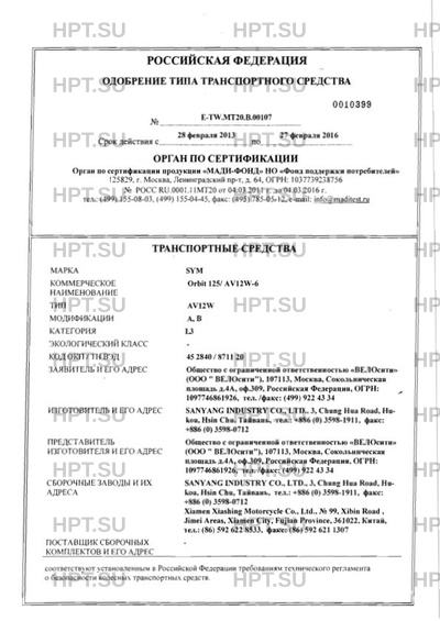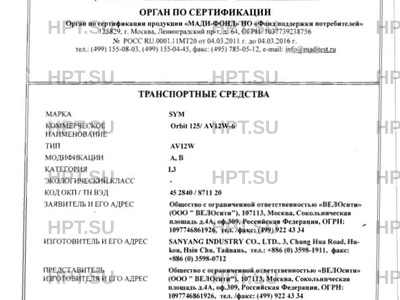 | Марка ТС | SYM |