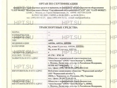 | Предприятие-изготовитель | Публичное акционерное общество “Черкасский автобус” (АО “Черкасский автобус”), 18036, г. Черкассы, ул. Риздвяна, 292, Украина тел. / факс: 38 (0472) 64-43-14 |