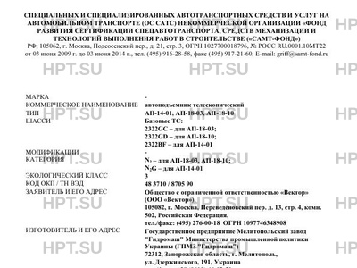 | Категория ТС | N2 - для АП-18-03, АП-18-10; N2G - для АП-14-01 |