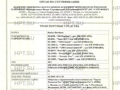 Заявитель Общество с ограниченной ответственностью "Харли-Дэвидсон Рус" (ООО "Харли-Дэвидсон Рус"), 109004, г. Москва, ул. Станиславского, д. 21, стр. 2, Российская Федерация, ОГРН: 1107746879547, тел./факс (495) 673-66-01