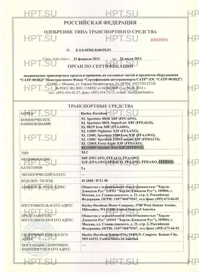 | Коммерческое наименование | XL Sportster 883R X8F (FFCAPO), XL Sportster 883L SuperLow X8F (FFEALO), XL 883… |