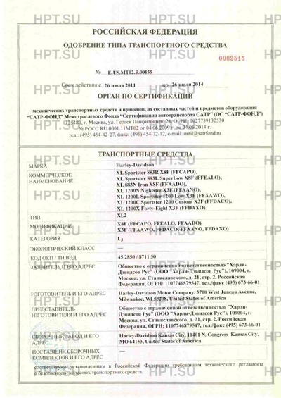Заявитель Общество с ограниченной ответственностью «Харли-Дэвидсон Рус» (ООО «Харли-Дэвидсон Рус»), 109004, г. Москва, ул. Станиславского, д. 21, стр. 2, Российская Федерация, ОГРН: 1107746879547, тел./факс (495) 673-66-01