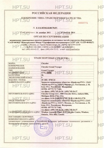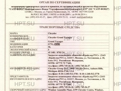 | Коммерческое наименование | Chrysler Grand Voyager. Тип ТС: Grand Voyager |